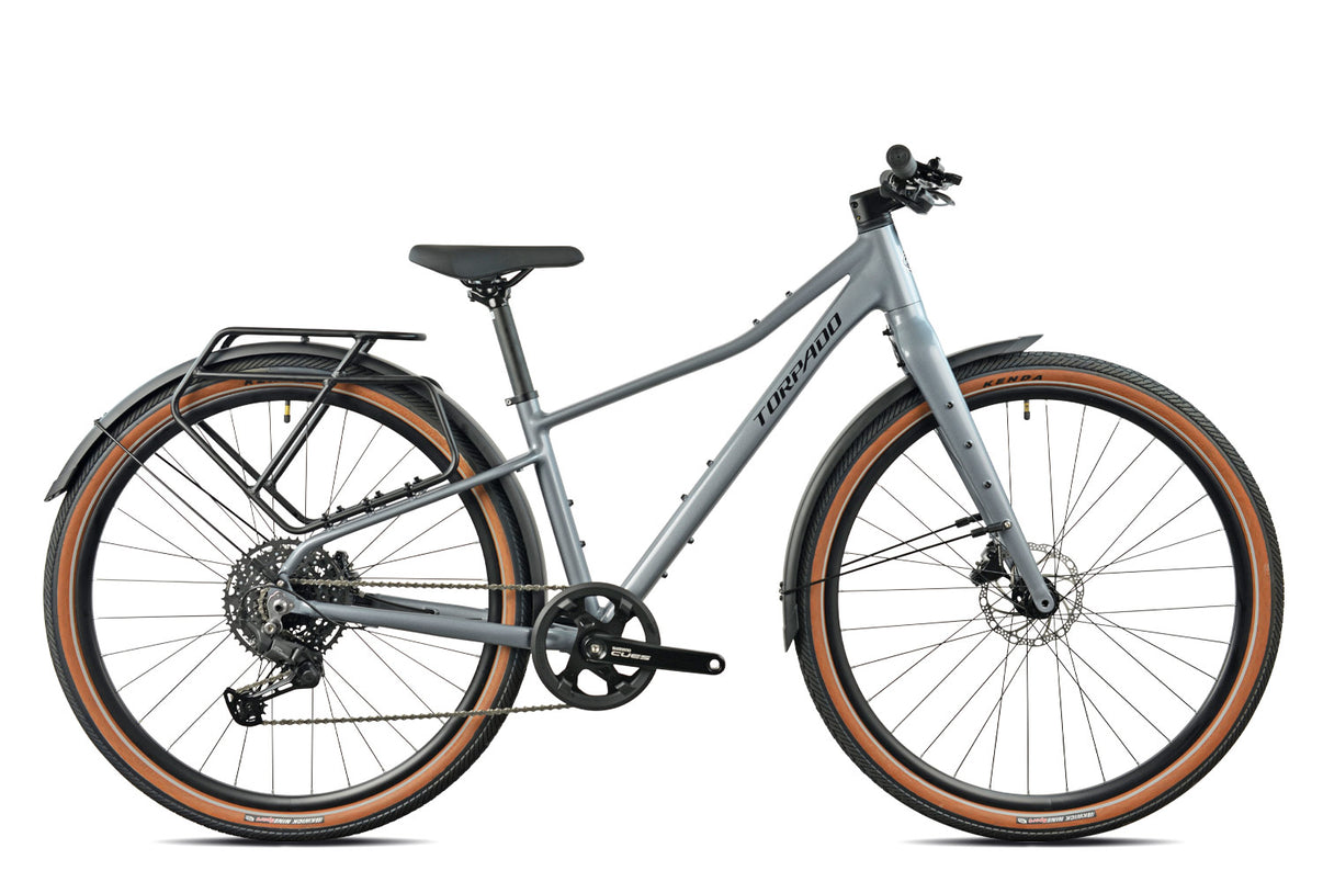 Design:Il telaio in alluminio leggero è progettato per offrire solidità e maneggevolezza.Il design moderno è arricchito da una geometria studiata per i percorsi urbani e il cicloturismo, con un'estetica curata nei dettagli che contraddistingue il marchio Torpado.Il passaggio cavi interno garantisce un look pulito e protegge le componenti, mentre parafanghi e portapacchi posteriore ne aumentano la versatilità per l'uso quotidiano.
