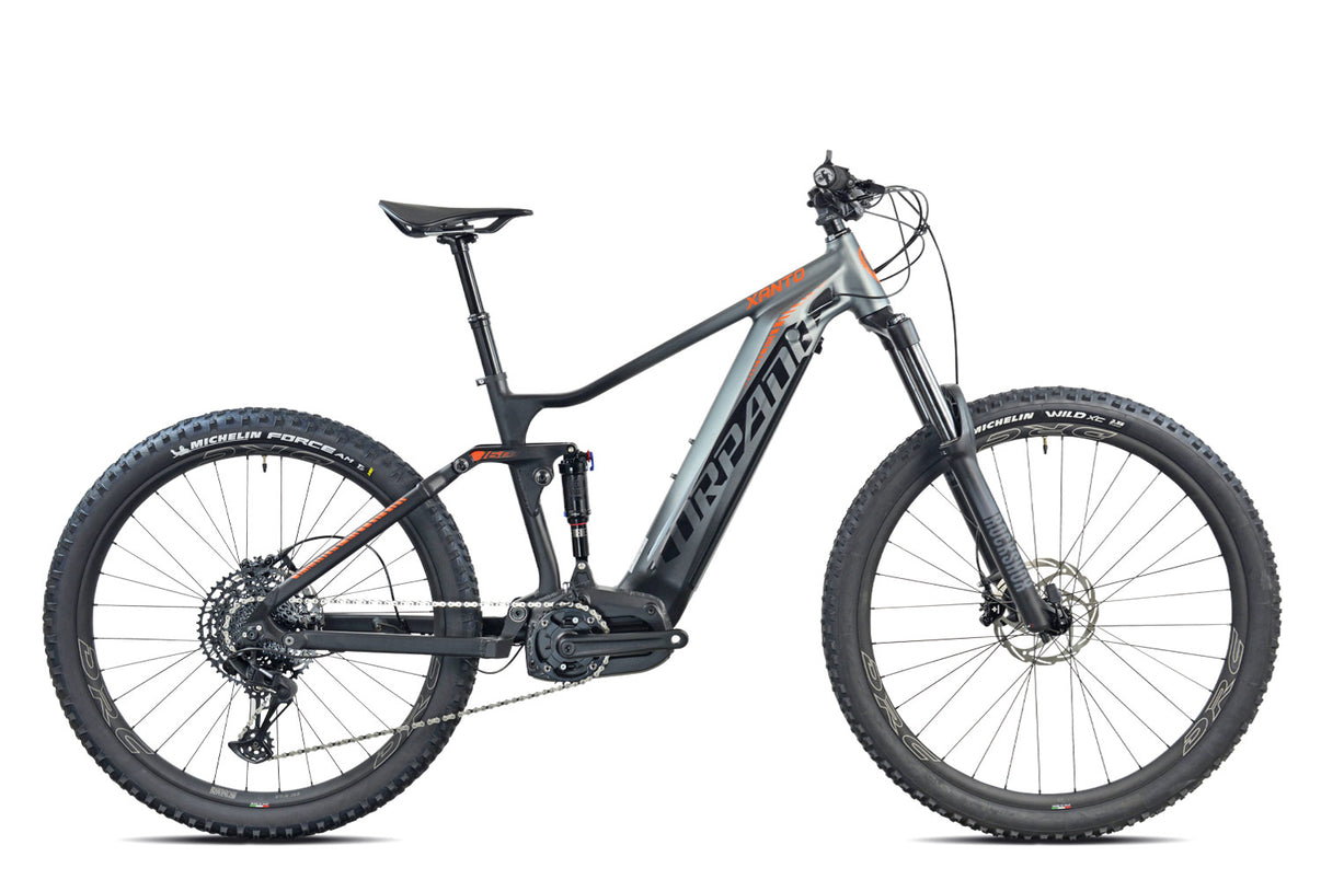 Torpado Xanto A è una e-MTB della linea Impudent, con un telaio in alluminio leggero e resistente, ideale per ogni tipo di trail.Il motore OLI SPORT PLUS da 250W e 85 Nm offre un supporto potente, mentre la batteria integrata da 882Wh assicura un'ottima autonomia. Il display OLI LCD fornisce tutte le informazioni utili durante la guida.La funzione Walking Assistance facilita le partenze e il superamento di ostacoli a bassa velocità, mentre la forcella Rock Shox 35 RL da 150mm di escursione e l'ammortizzatore Rock Shox Monarch RL garantiscono comfort e controllo.Scopri di più sui motori OLI